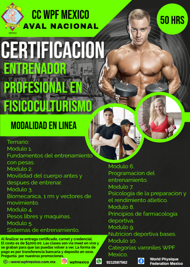 El objetivo principal de nuestras certificaciones es proveer de los conocimientos del fisicoculturismo con base en la ciencia. Con el objetivo de que todos los entrenadores certificados por WPF México, cumplan con las altas expectativas y exigencias del fisicoculturismo actual.